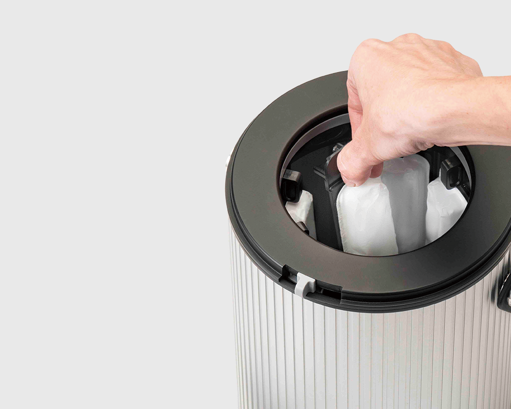 Remove the frozen cooling packs, hold each by its handle, and slot them into the rim of Lyra. The magnetic lock makes setup quick and secure. Choose how many strips to use depending on the drink and desired temperature.