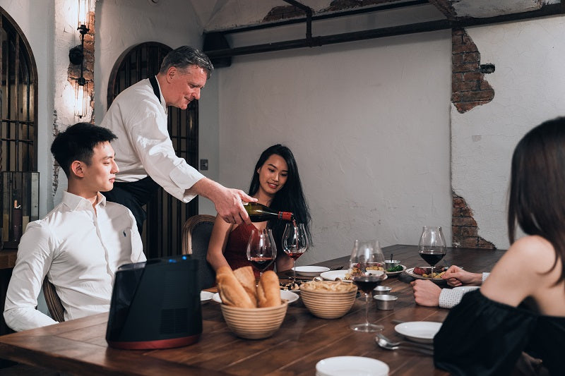 A sommelier presents a prized Barolo, kept at its ideal serving temperature by Venus. With a graceful pour, anticipation builds at the table — wine service becomes theater, elevating the evening into an experience of artistry and refinement.